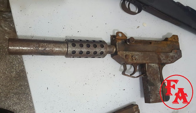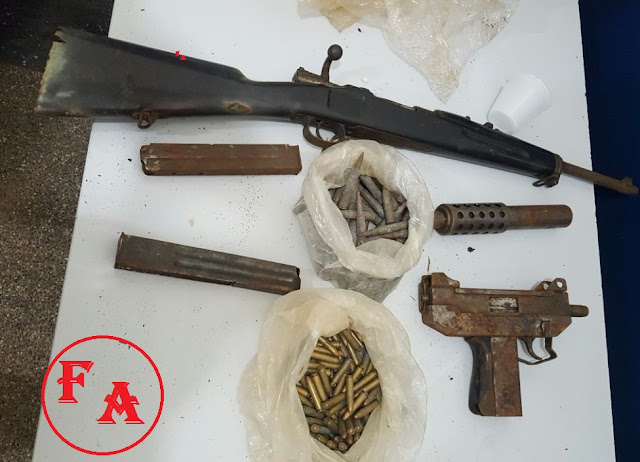 Foram apreendidos uma sub metralhadora UZI, calibre 9 mm, e um fuzil calibre .30, um silenciador, para a Sub metralhadora, dois carregadores 9 mm ( da Sub Metralhadora Uzi), 82 munições calibre 7,62 mm e 106 munições calibre .30.mm
