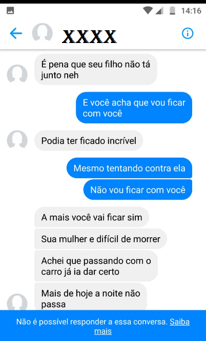 Segundo o Boletim de Ocorrência no decorrer desta conversa a suspeita fez várias ameaças de morte a vitima.