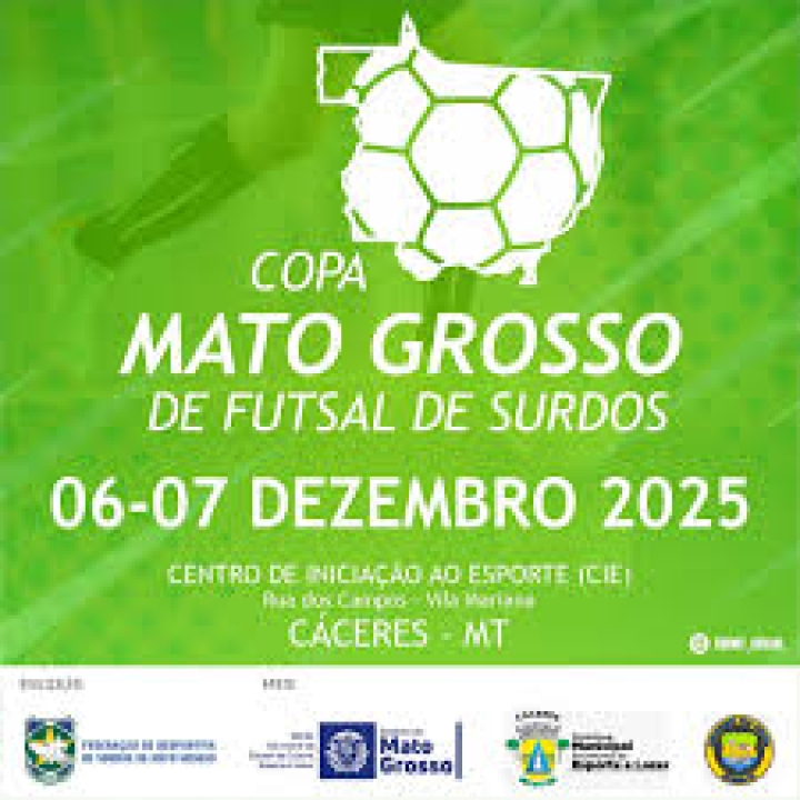 A Copa Mato Grosso de Futsal de Surdos está confirmada para os dias 06 e 07 de dezembro de 2025, reforçando o calendário esportivo inclusivo de Cáceres. A competição, que reúne atletas surdos de todo o estado, será realizada no Centro de Iniciação ao Esporte (CIE), na Vila Mariana.
